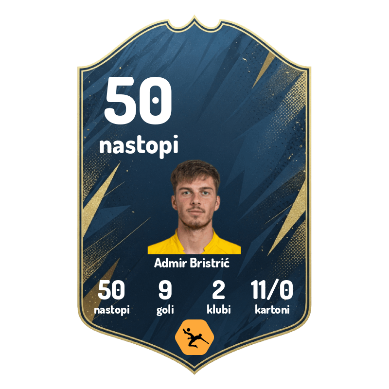 50 – 22-letni napadalec iz Bosne in Hercegovine Admir Bristrić je v svojem drugem slovenskem prvoligašu Bravu prišel do petdesetega nastopa. Do zdaj je dosegel že 9 golov.