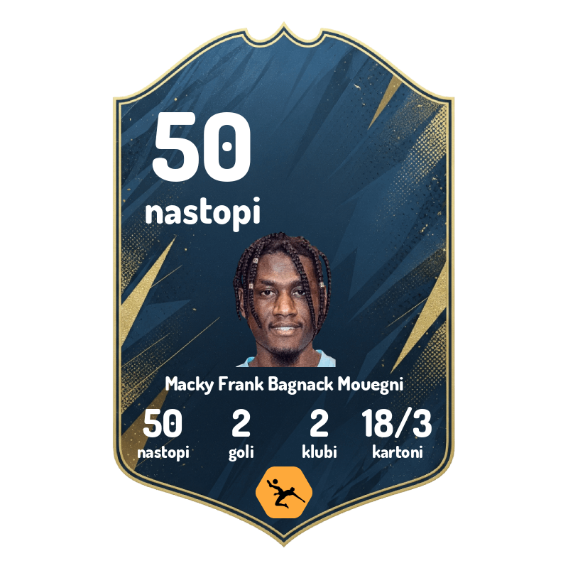 50 – 30-letni štoper ajdovskega Primorja Macky Bagnack je v minulem vikendu prišel do petdesetega nastopa v naši prvi ligi. Bagnack je v tem času doseel dva gola, prejel pa kar 18 rumenih kartonov.